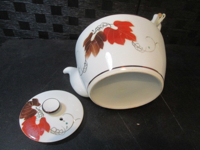 未使用レトロな有田焼急須 何十年か前に購入して使用せず倉庫保管していた有田焼急須です 形絵付けがレトロ感たっぷりです サイズ的には大きな急須かと思います サイズ高さ急須本体約13㎝ 横幅約19cm 奥行約15cm 多少の誤差あります 割れ ヒビ傷ありません 未使用品ですが購入してからかなりの年月が経過しています 小さな経年劣化がある様です 全くの新品ではありません 写真が全てになります 引き取り出来ます 宜しくお願いします