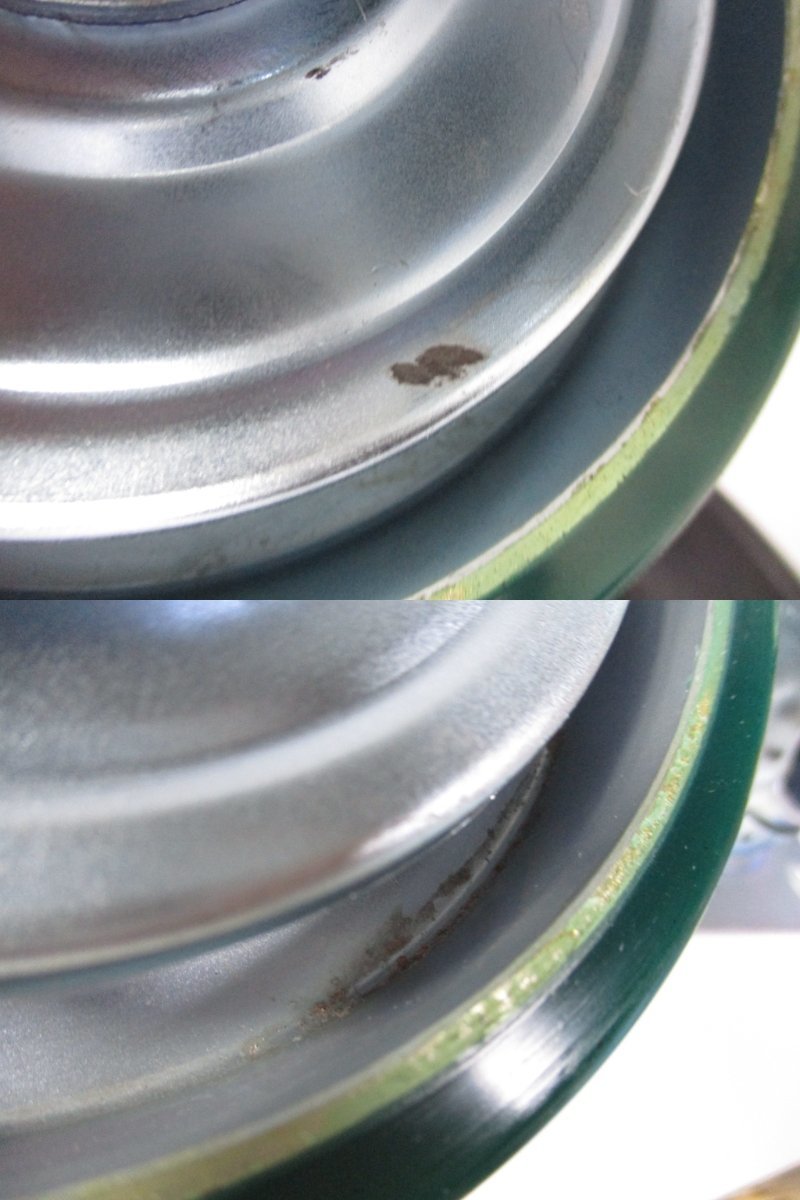 商品説明 | ご閲覧いただきありがとうございます。 以下をお読みいただき、ご検討、ご入札をお待ちしております。 ◆車輪サイズ : 直径 約150mm × 幅 約45mm ◆取付穴サイズ : 縦 約18mm × 横 約11mm 未使用品ですが保管に伴い 汚れ、キズ、サビ、剥がれ部分、等ございます。 こちらは発送方法【A】の商品です。詳しくは以下の≪発送方法≫をご覧ください。 |