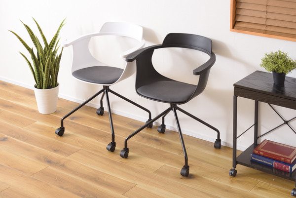 デスクチェア スチール(粉体塗装) ポリプロピレン ソフトレザー ホワイト PC-986WH