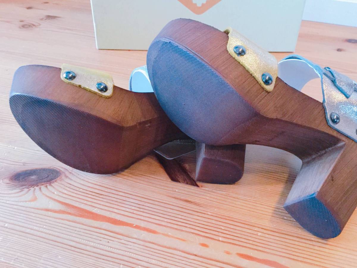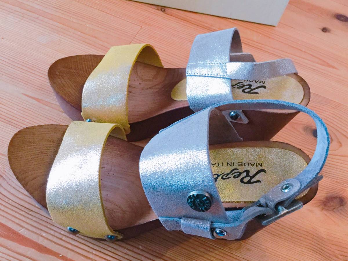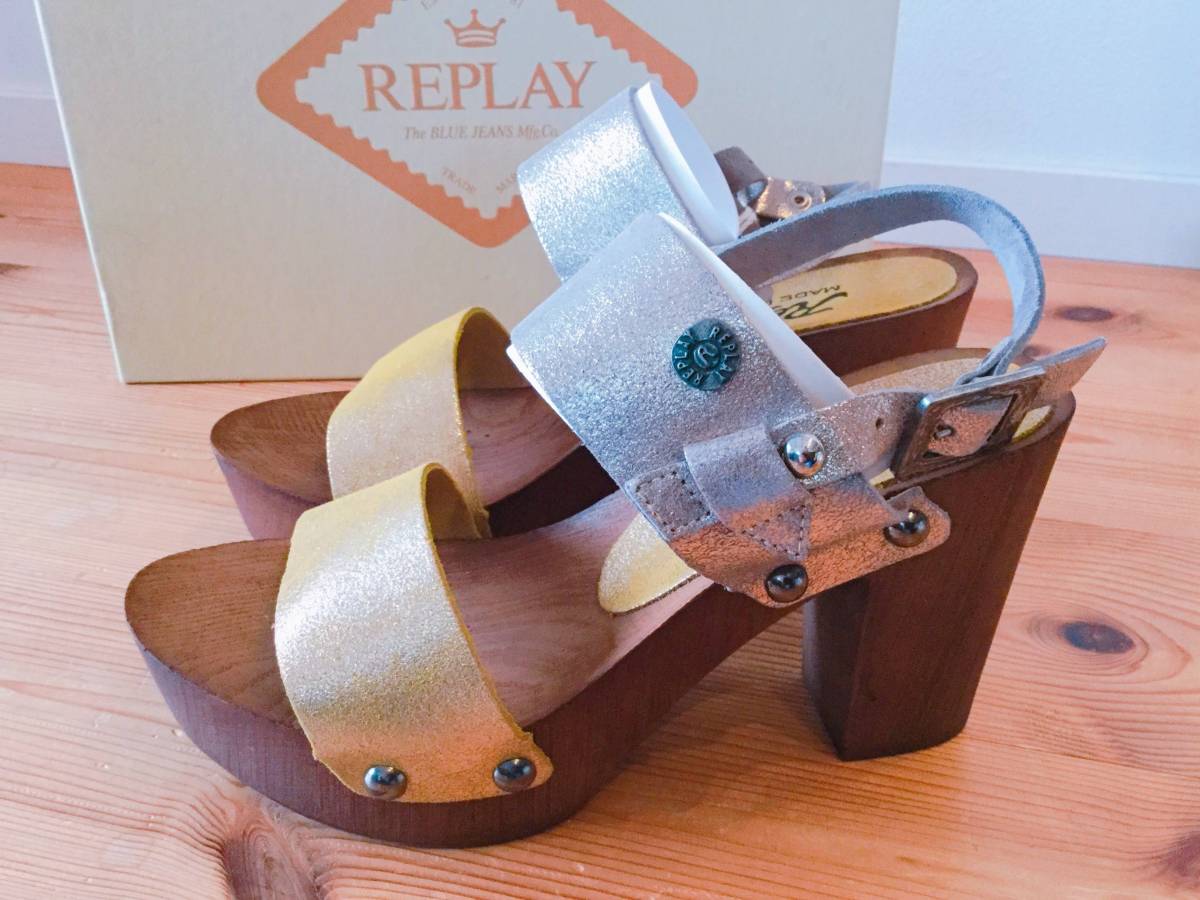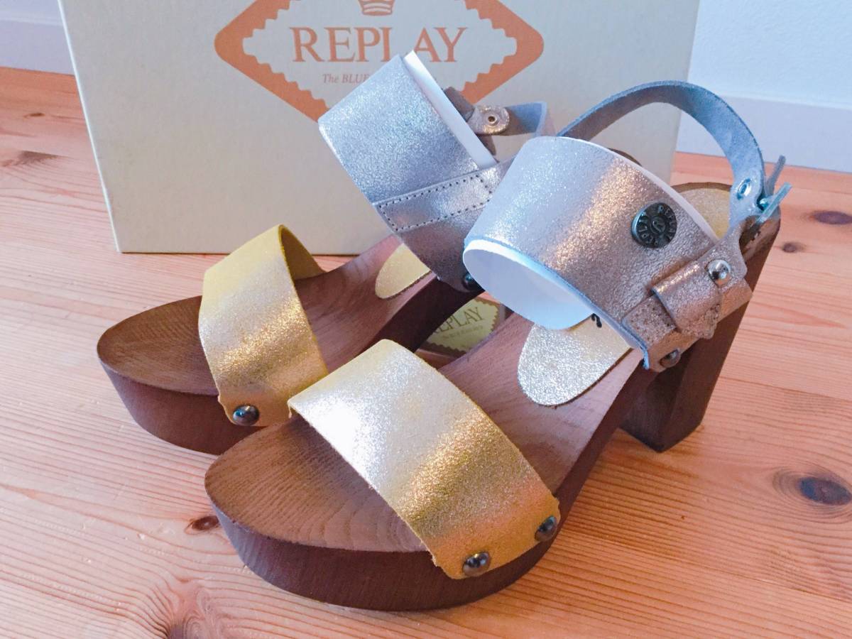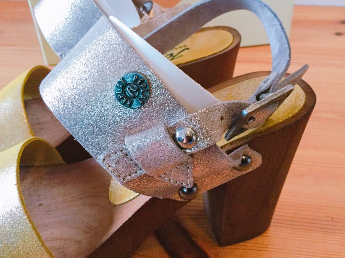 未使用 REPLAY リプレイ シルバー×ゴールド ウッドソールサンダル 36size 23cm 定価22000円 | |||