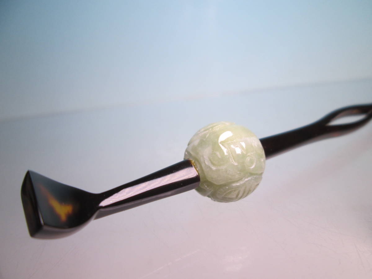 ☆片山雅博 作 本鼈甲 本翡翠 彫刻玉の挿しかんざし 8,5g 共木箱