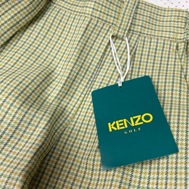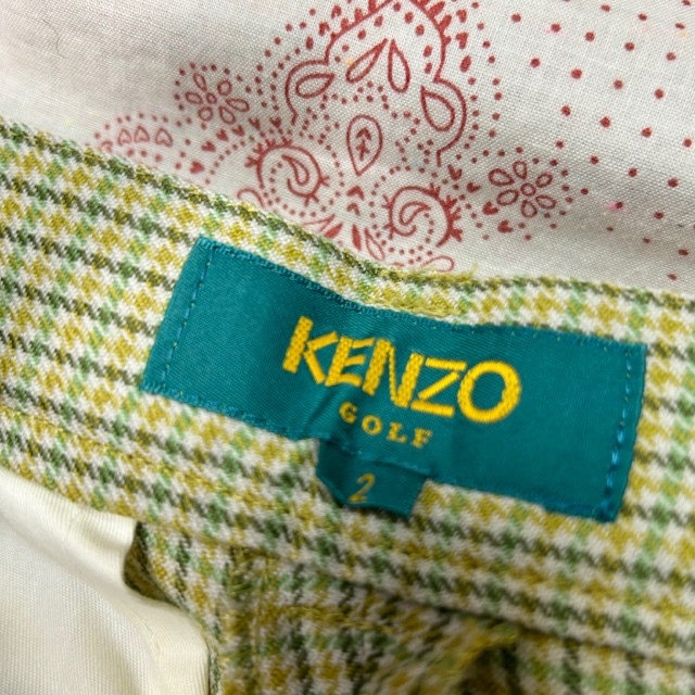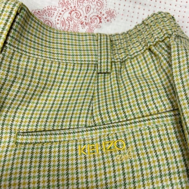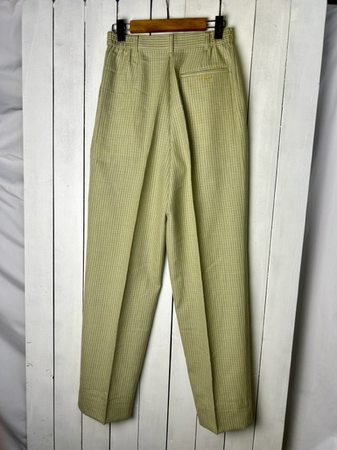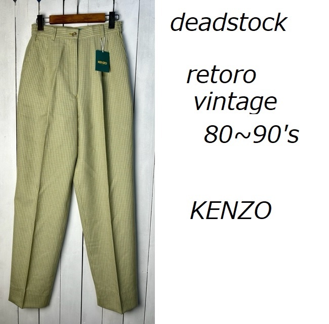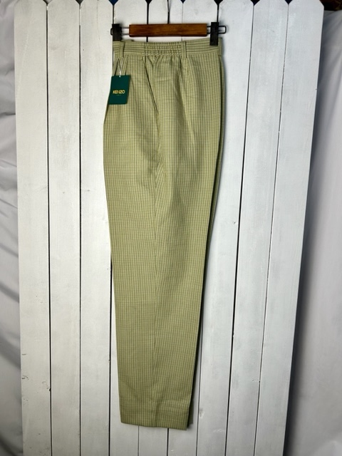 レトロ古着 タグ付き未使用品 80s~90s KENZO チェックスラックスパンツ M~L 薄緑 ケンゾー オールド ヴィンテージ ゴルフ サマーウール 春夏秋 デッドストック ●287
