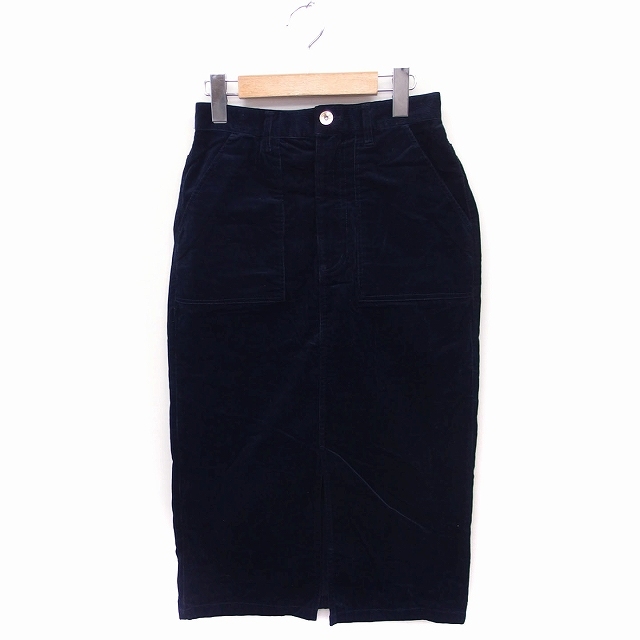 エージーバイアクアガール AG by aquagirl コーデュロイ タイトスカート スリット ロング ミモレ丈 無地 M ネイビー 紺 /FT23 レディース