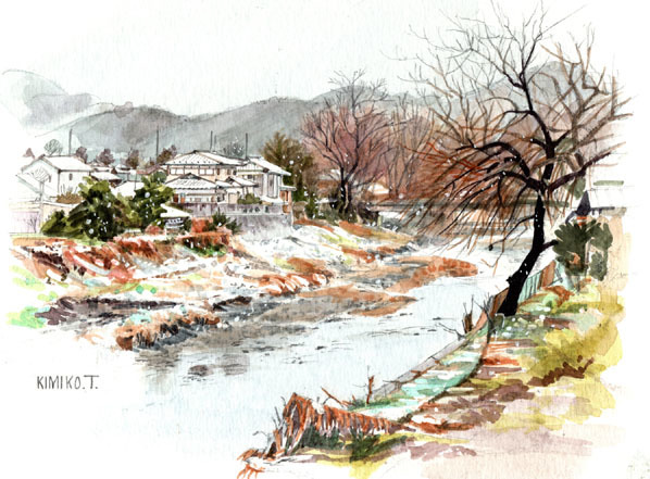 第8248号「雪が降ってきた」埼玉県比企郡小川町槻川/田中 君子画