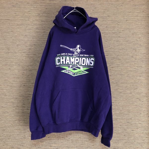 | 【ギルダン】パーカー ソフトボール ガールズ 紫 裏起毛 デカロゴ70 | |