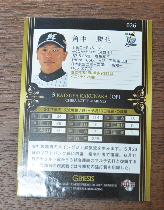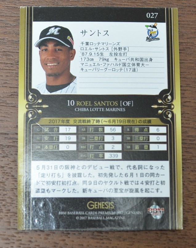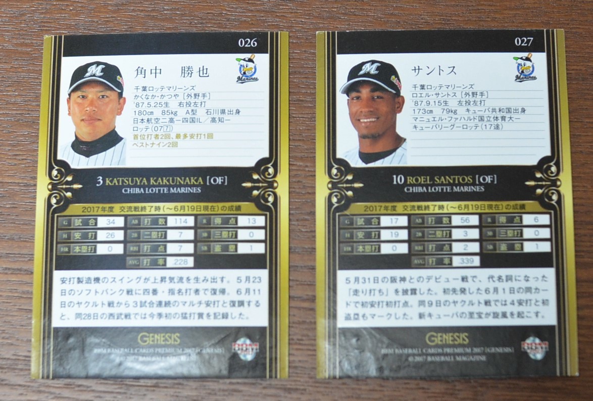 CHIBA LOTTE MARINES  プロ野球 2017年 サントス・角中  トレーディングカード 2枚セット