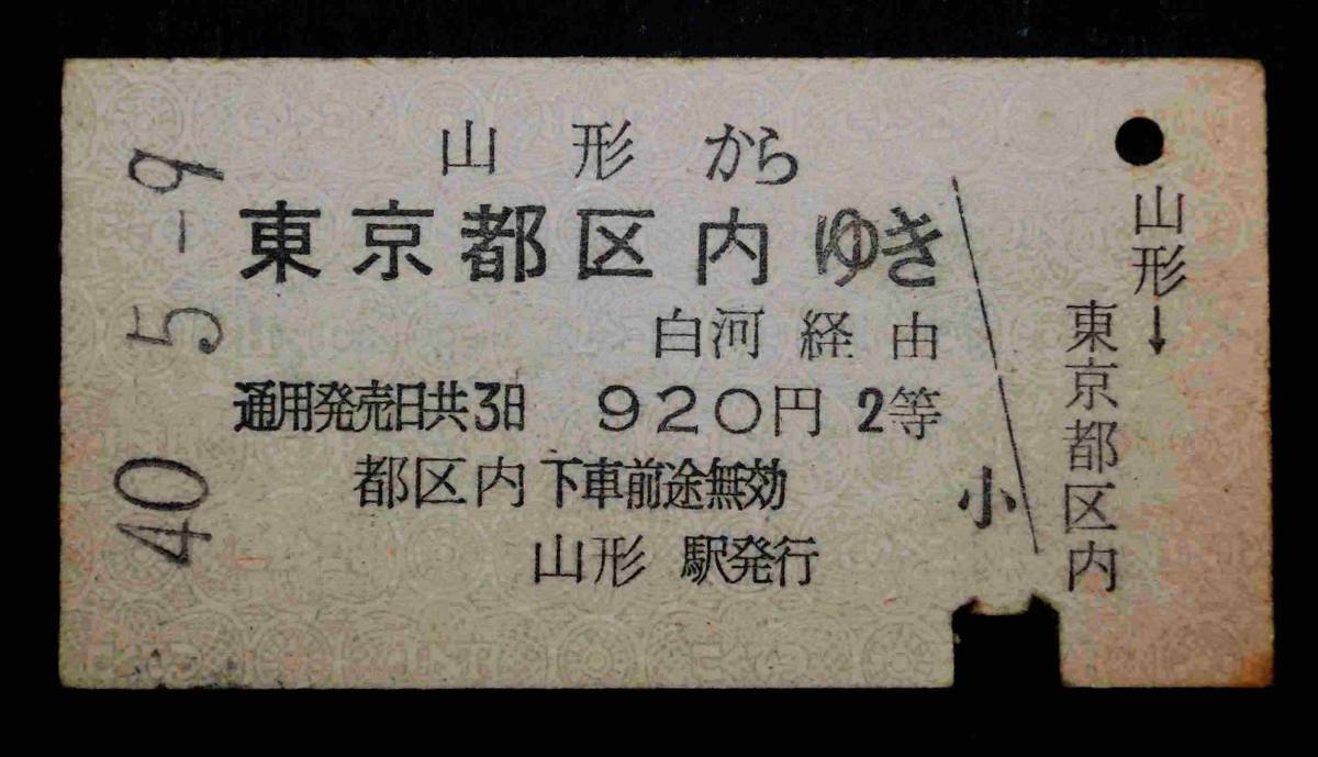 E37205 国鉄 A型 硬券 乗車券 2等 山形 白河 東京都区内 s40.5.9