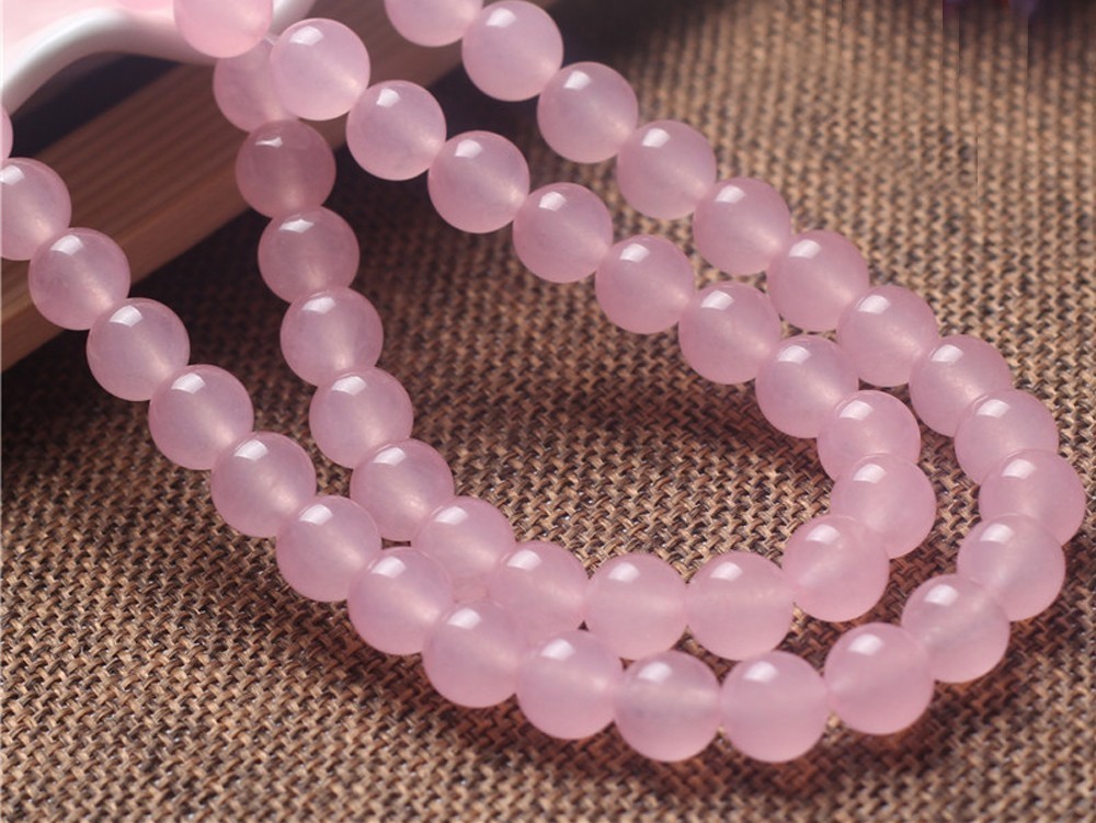 [EasternStar] 海外発送 7A ピンク カルセドニー 粉玉髄 Chalcedony 玉径14mm 天然石 手作り 1連売り 長さ約40cm