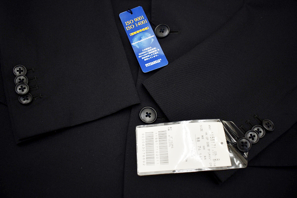 ブラックカラー 外ポケット3個 内ポケット5個 秋冬向き 下げ札あり 裏地裾まで サイドベンツ(しつけ糸あり) 3つボタン テーラードジャケット ブレザー