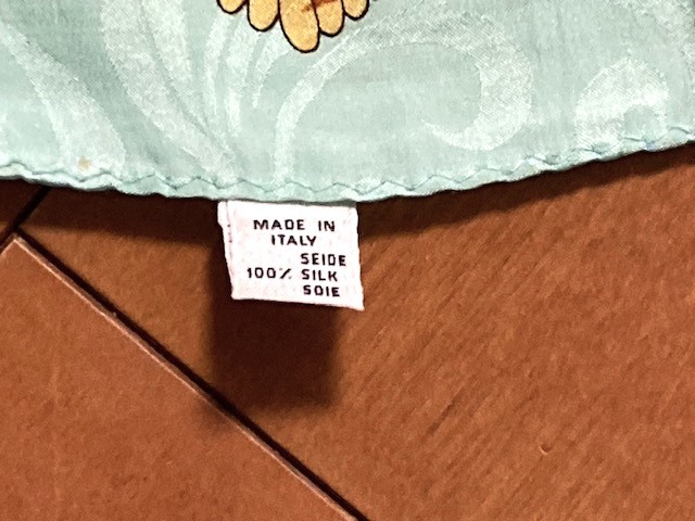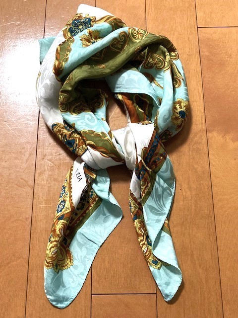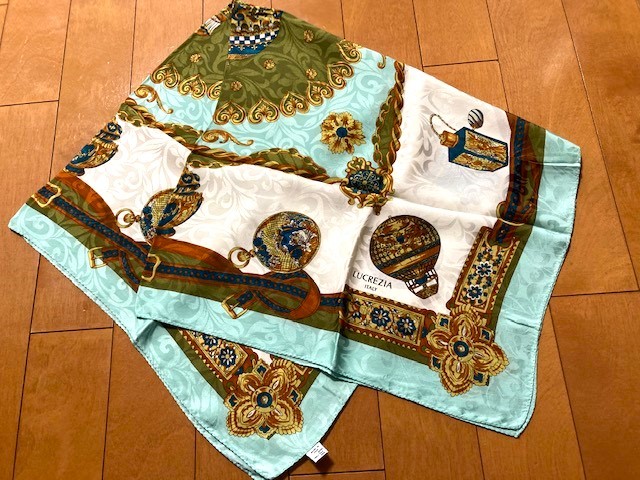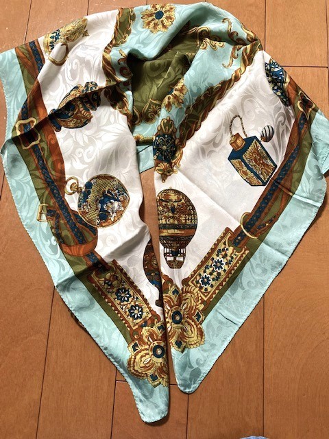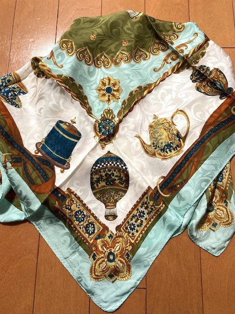 イタリアで気に入って購入しましたが、使う機会がなく、ずっとしまってありました。 色はミント系です。 キズ、汚れなどないと思いますが、見落としていたらすみません。 サイズ:約82cm四方(素人採寸なので、多少の誤差はお許しください) 素材:シルク100% ※オークション終了後はお手数ですが落札者さまよりお手続きを開始してください。 急用などで2泊以上対応ができない場合は自己紹介欄に記載いたします。 |