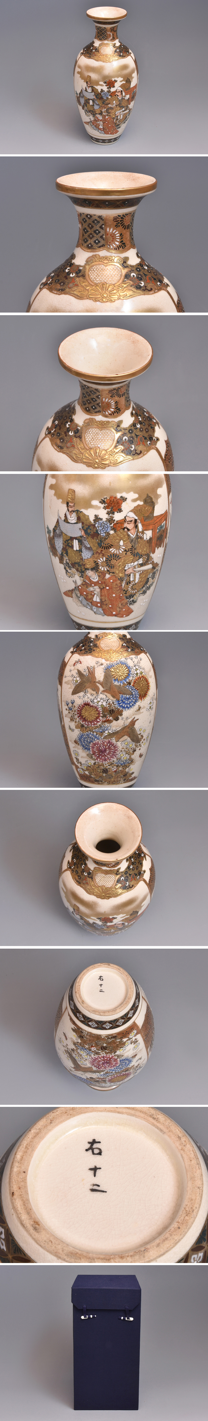 豪華絢爛 明治期 薩摩焼金彩色絵花鳥 武者図花瓶 花器 花入 花生 古陶磁器 飾壺 里帰品 輸出手 美品 |
