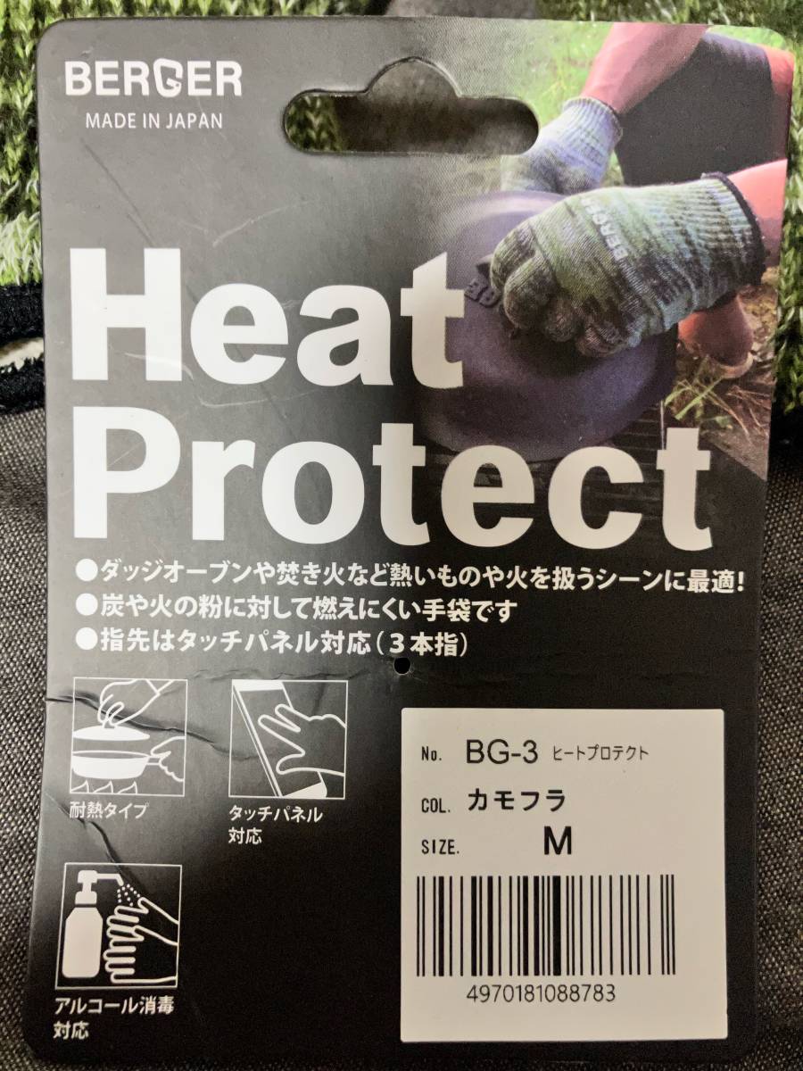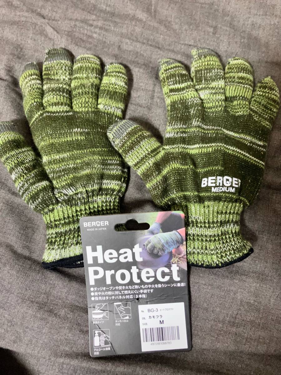 BERGER ヒートプロテクト グローブ 耐熱 手袋 M タッチパネル対応 キャンプ バーベキュー オートバイ 自転車 バイク 軍手 カモフラ 焚き火
