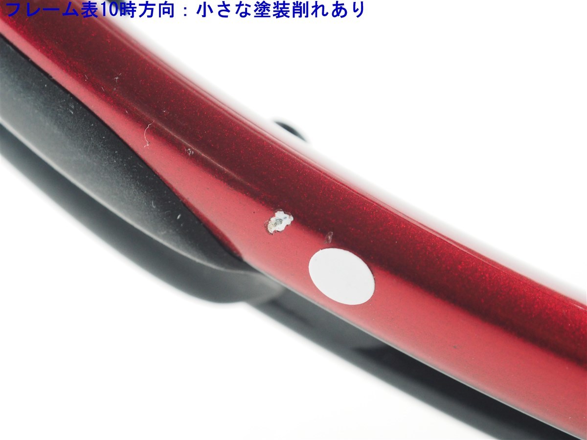 大きな目立つような深いキズはありませんが、フレーム表面には米粒くらいの大きさのキズと小さな細かい擦りキズがあります。ラケットの使用感はありません。