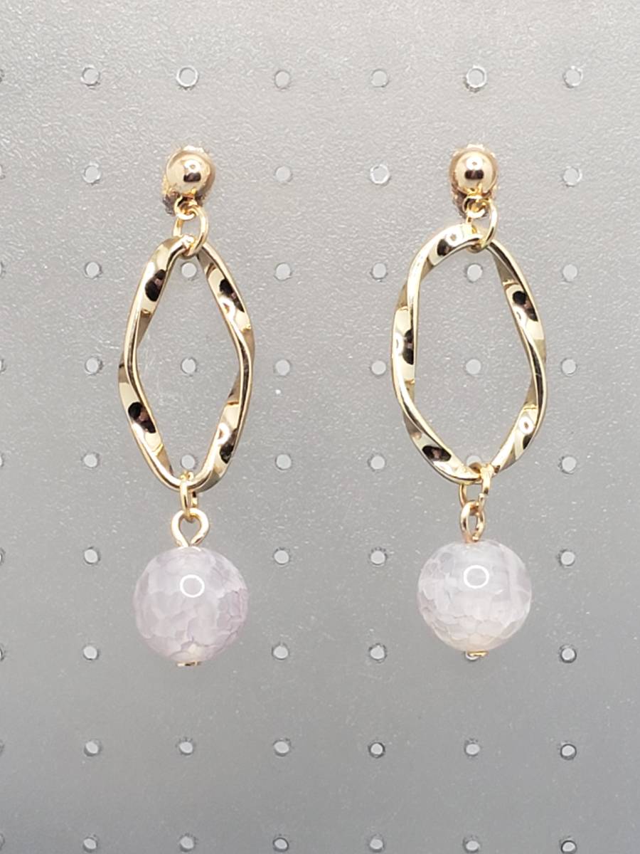 ★ハンドメイド イヤリングorピアス B814 樹脂フック・クリップ式イヤリング金具など変更無料 ゴールドリング クラッククォーツ★
