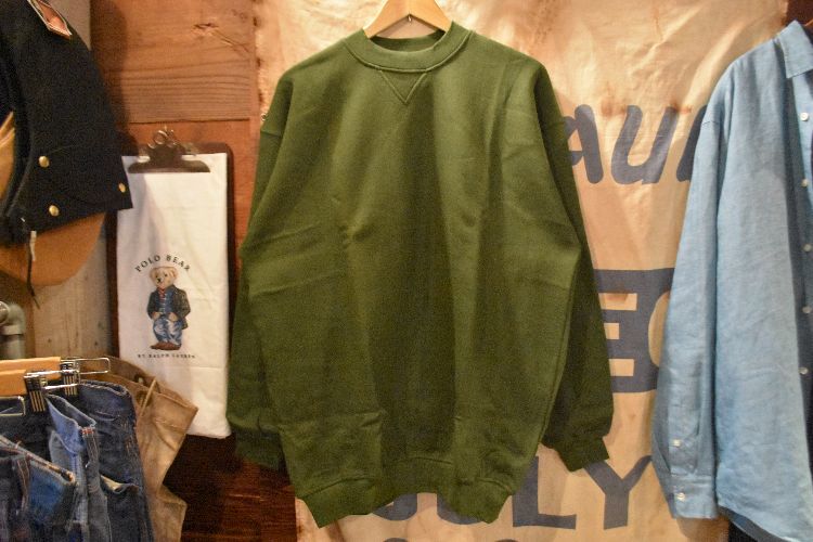 デッドストック品◎~90sビンテージPeak Collectionピークコレクションオールコットン無地スウェットシャツLグリーン緑アメカジn23222