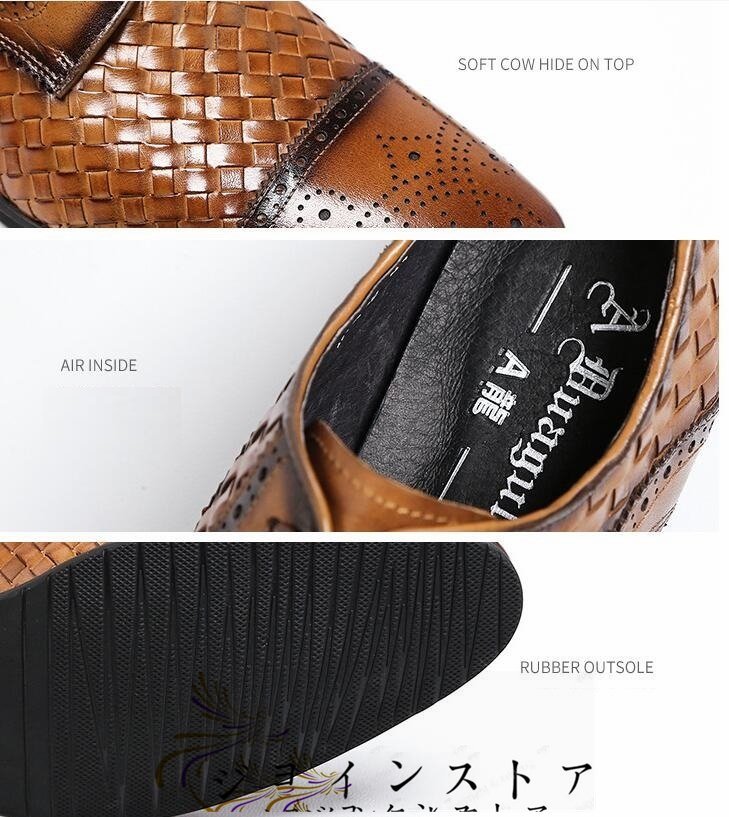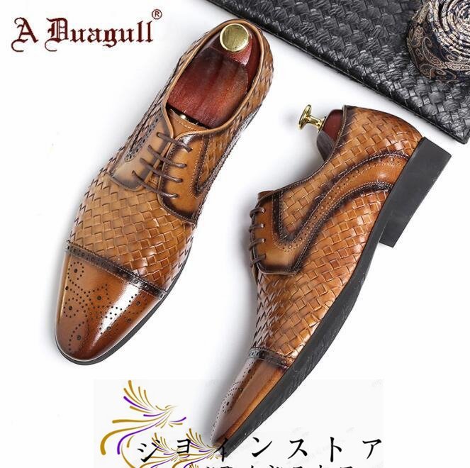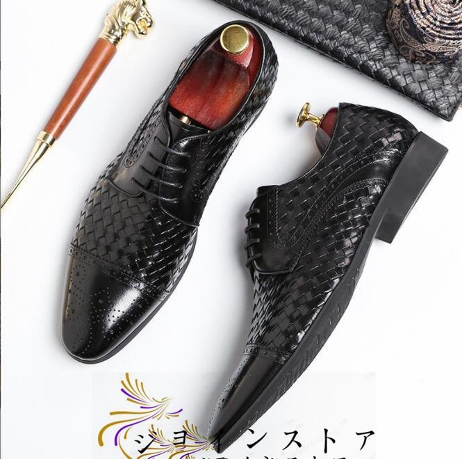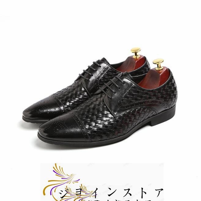 ビジネスシューズ 新品 メンズシューズ 最高級 レザーシューズ 牛革 手作り編み込み 本革 紳士靴トップレイヤー 切替 クラシック 黒 26.5cm