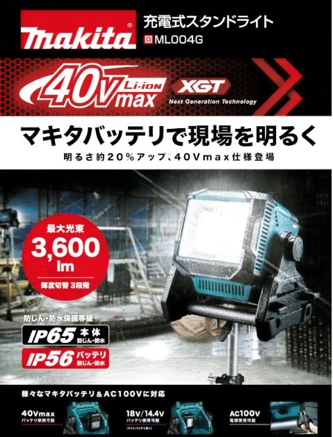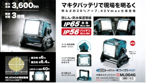 マキタ ML004G (本体のみ) (バッテリ・充電器別売) 充電式スタンドライト 40Vmax 18V 14.4V