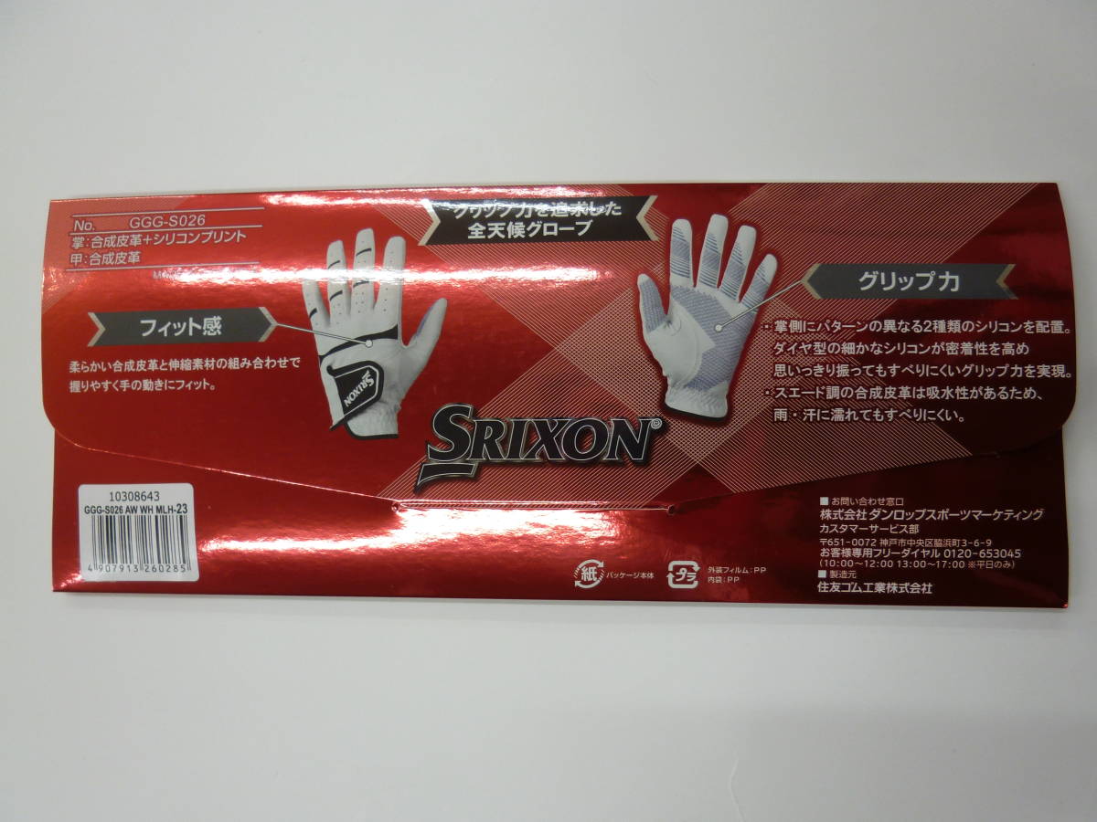 【 送料無料 】21㎝★ ダンロップ スリクソン ★ ゴルフグローブ★ 思いっきり振れる・滑りにくい・グリップ力大!★ GGG-S026 ★ 白 21