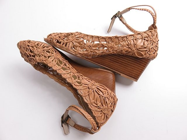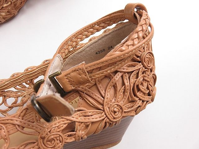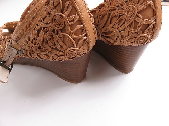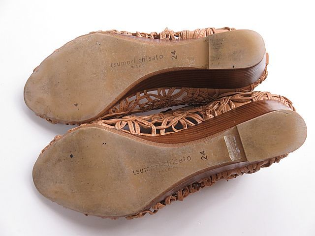 【送料無料・即決価格】ツモリチサト パンプス ウェッジサンダル 花模様モチーフ 靴 茶 24.0cm