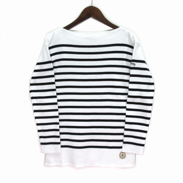 カネル Kanell ミッドシップ MIDSHIP コットン ボーダー ボートネック バスクシャツ カットソー 長袖 ホワイト ブラック XS フランス製