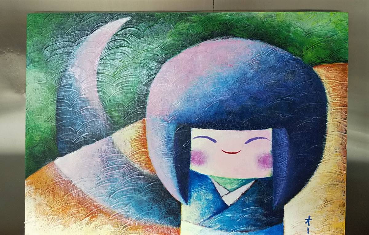 オーランド 油絵 日本女性 こけし 油彩 額なし