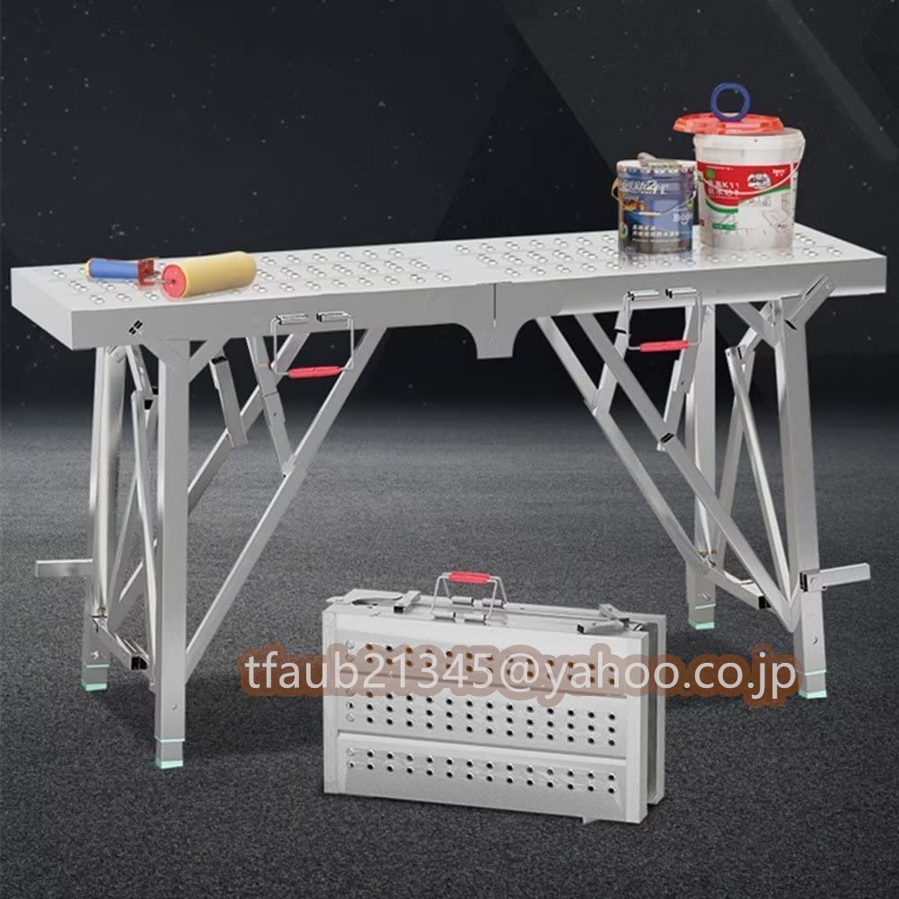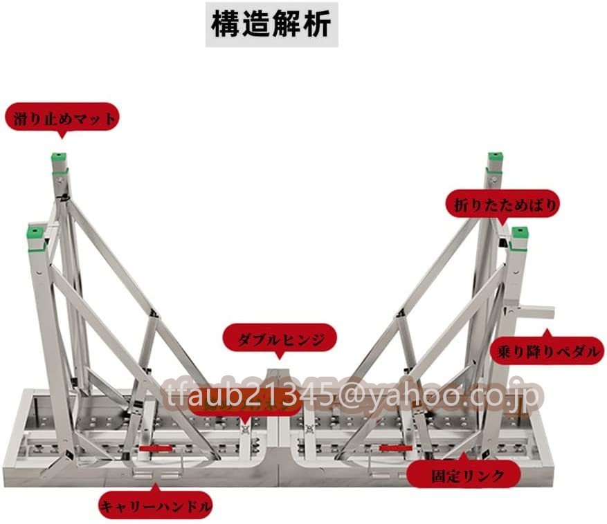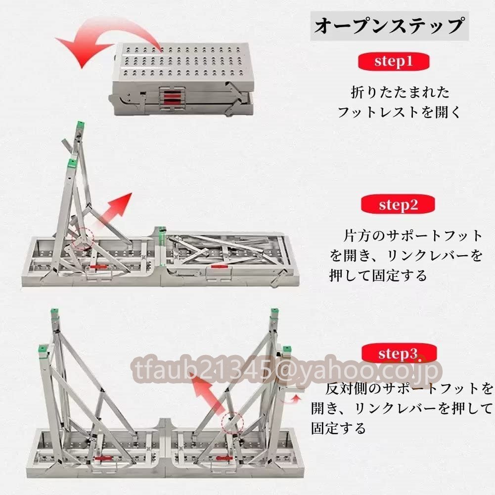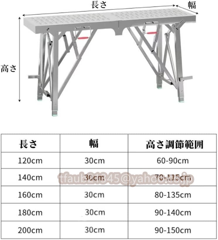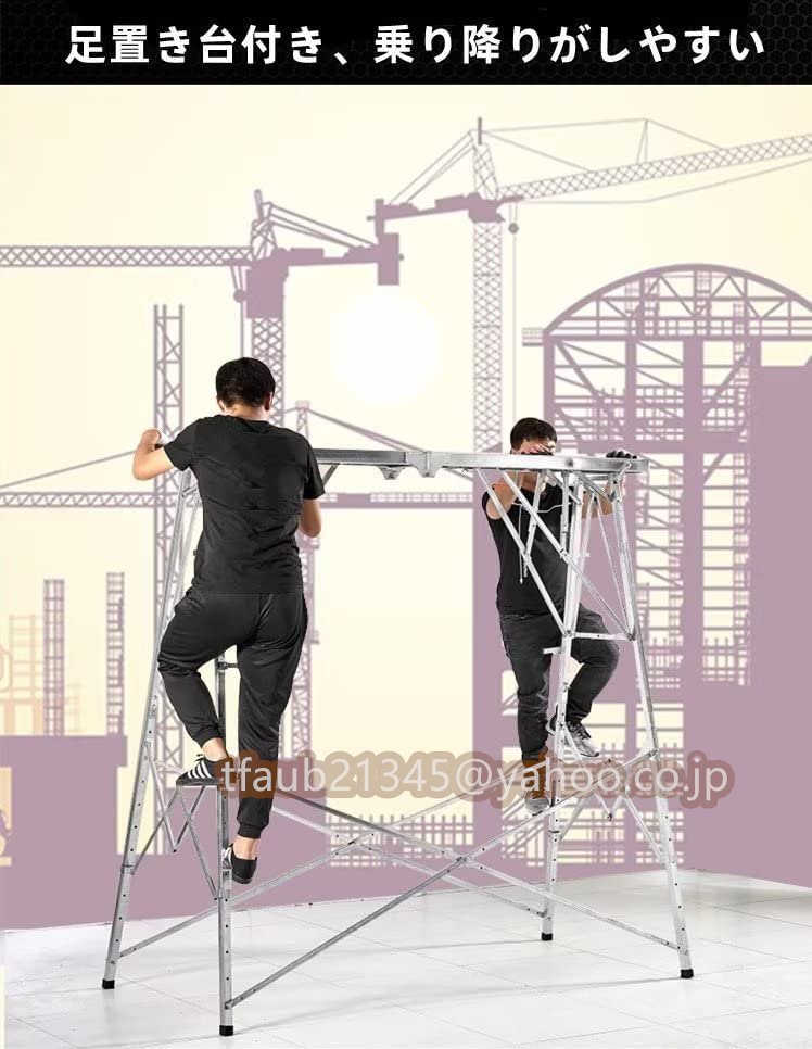 足場台 四脚アジャスト式立ち馬 洗車台 伸縮脚付作業台 踏み台 折りたたみ式 足置き台付き 耐荷重400kg 安全 持ち運び便利 長さ200CM