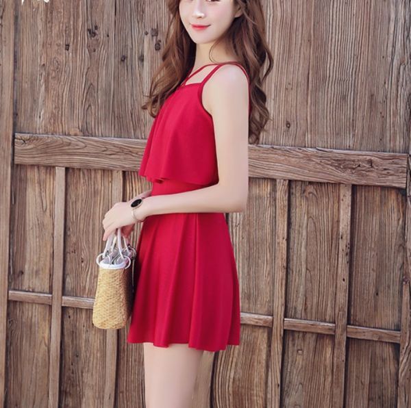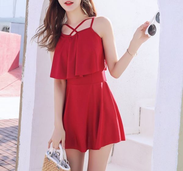 ★★★大反響の予感! レディース 水着 ワンピース フレア ミニスカート ショルダーストラップ d36