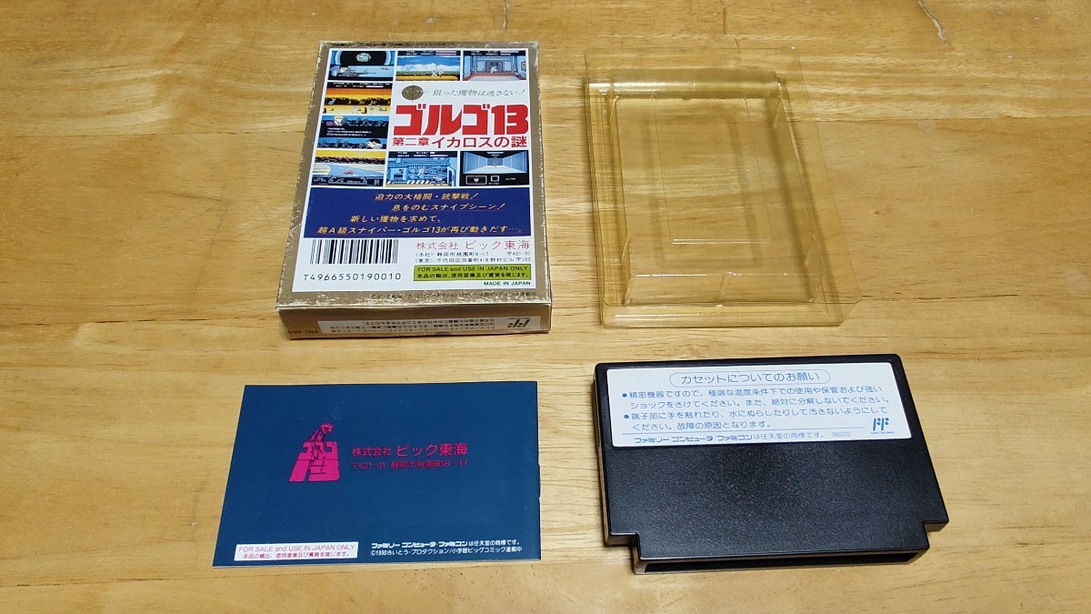 ファミコン用ソフト「ゴルゴ13 第二章イカロスの謎」(箱・取説付き)です。