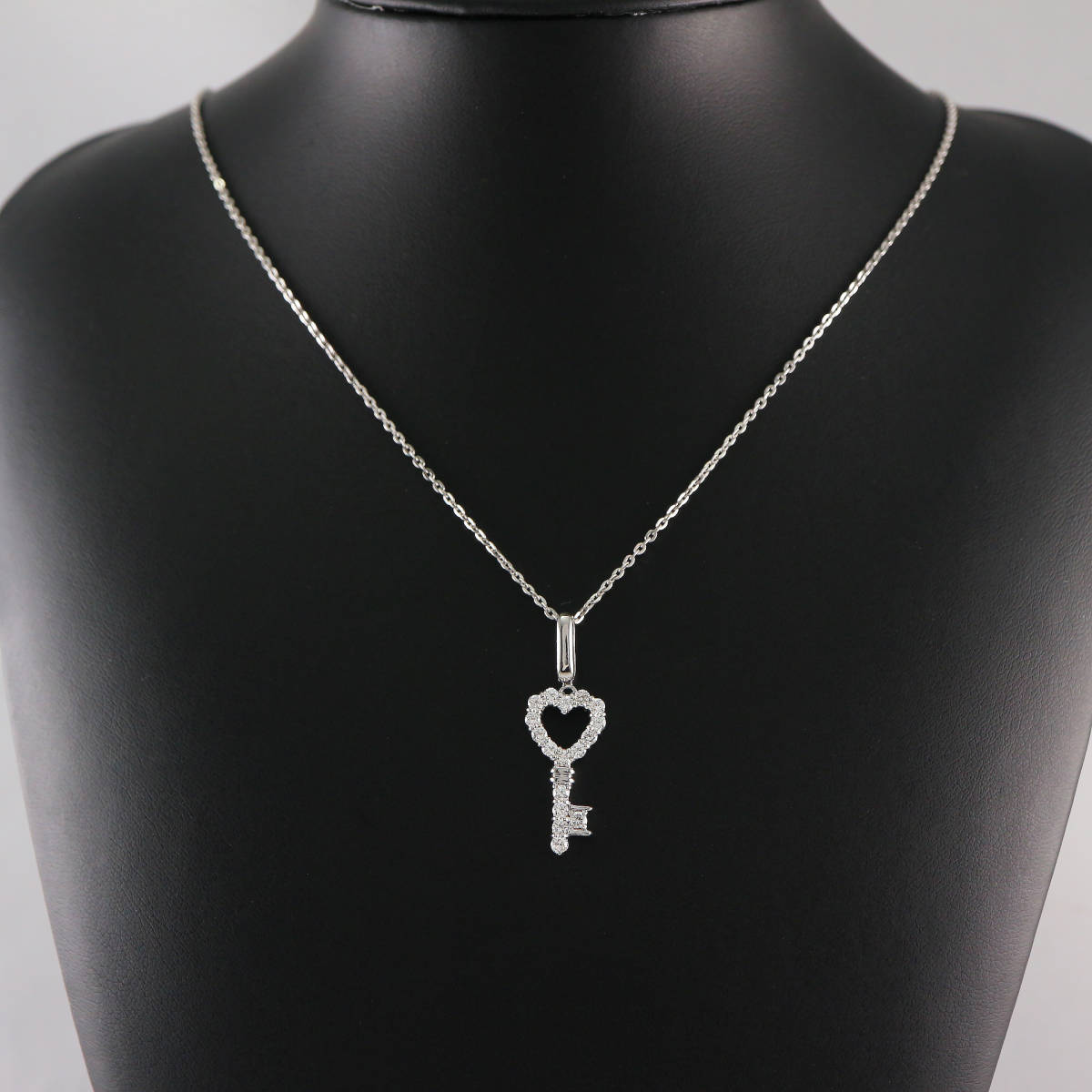 【コメント】:高品質なメレーダイヤがあしらわれた鍵モチーフの可愛らしいペンダントトップ。ダイヤはほぼカラーレス、SIクラスの高品質なメレーダイヤがあしらわれています。バチカンも十分な大きさがあるので殆どのチェーンでお使いいただけます。