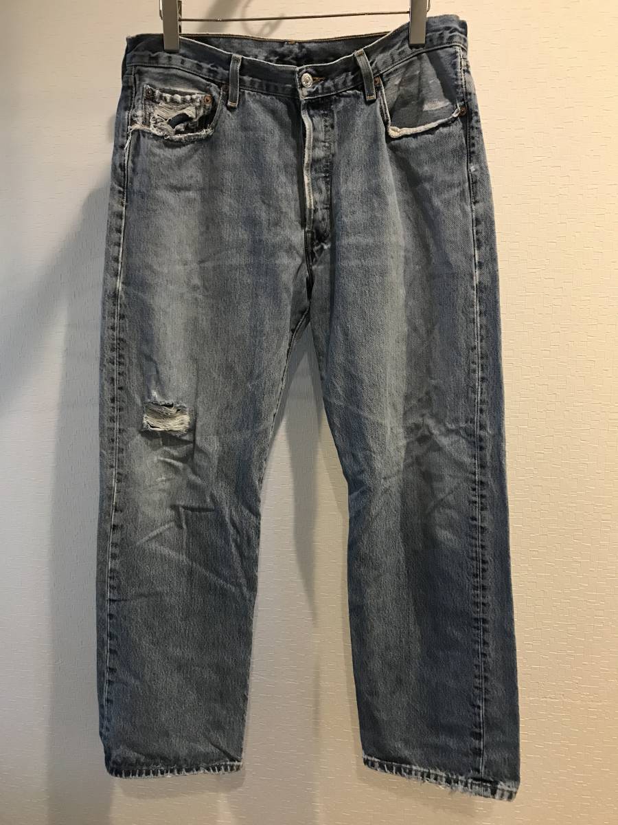 LEVI‘S 501 リーバイス501 デニム 33x30 ライトブルー系 ダメージ ストレート ボタンフライ USA古着 vintage アメカジ