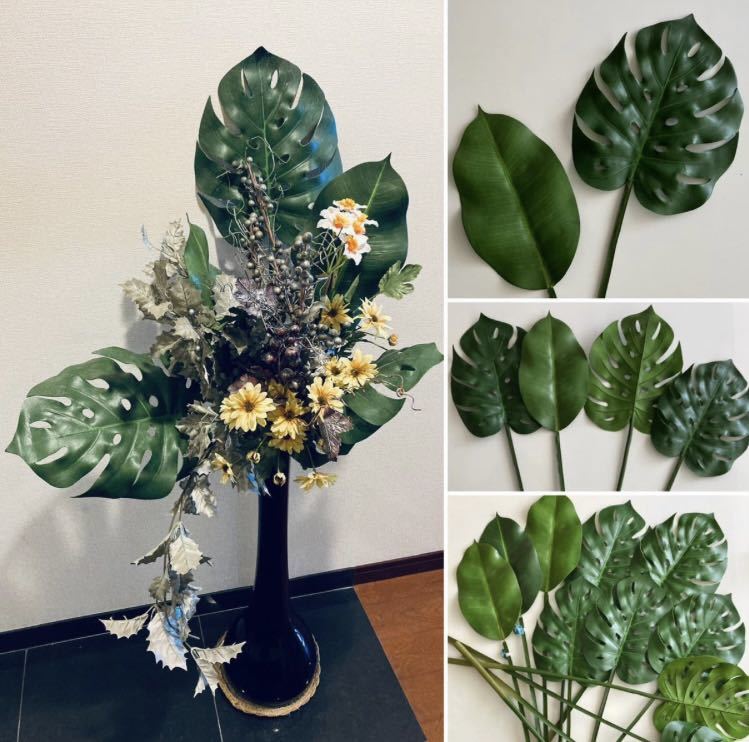 フラワーベースや鉢にさしたり、壁に吊るして楽しめるモンステラのフェイクグリーン