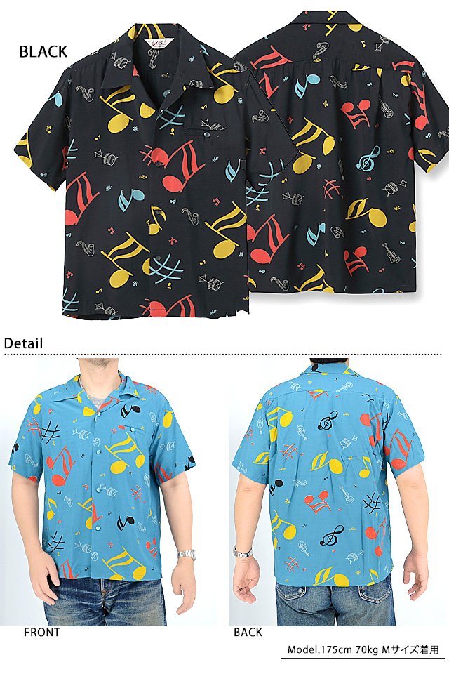 | レーヨンオープンシャツ 「ROCKIN' NOTES」◆スターオブハリウッド SOH-M00051 | |||||||||||||||||||||||||