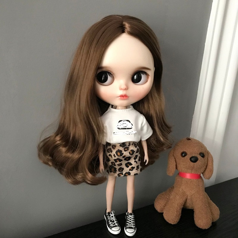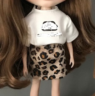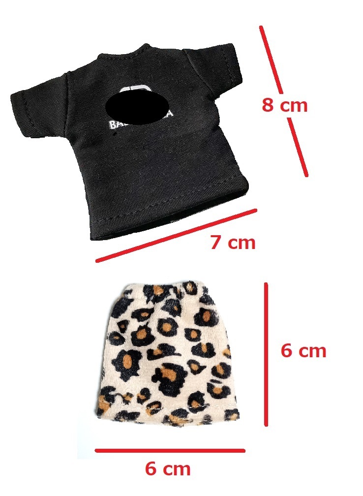 ミニチュア白Tシャツ+豹柄スカート2点セット -20~40 CM ドール用。