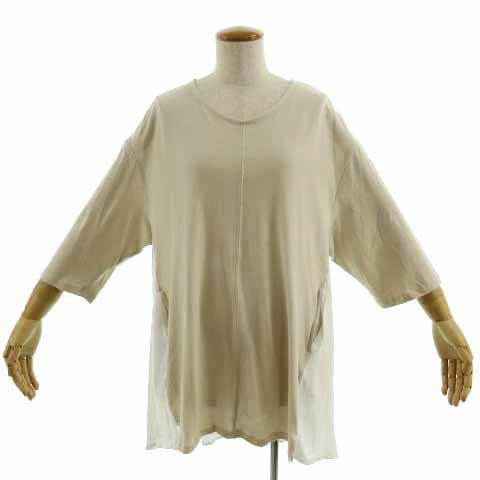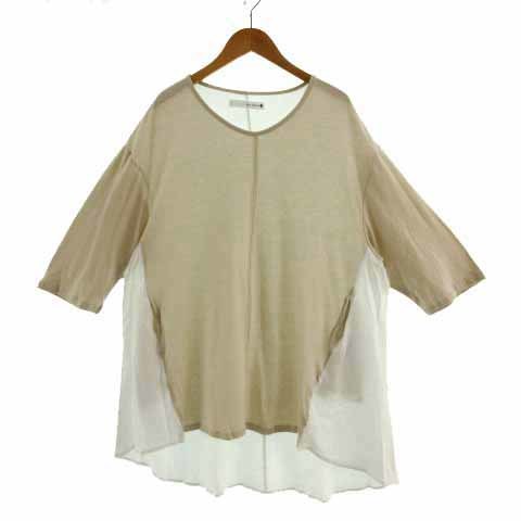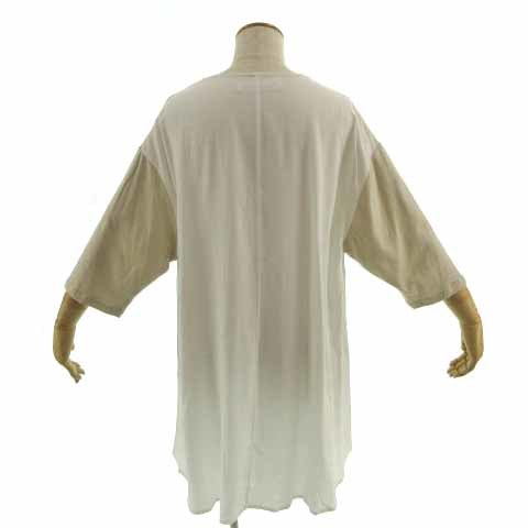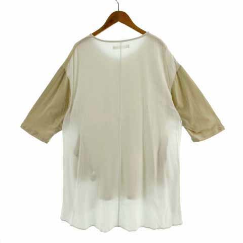 ブージュルード Bou Jeloud カットソー 七分袖 ロング丈 切替え オーバーサイズシルエット コットン ベージュ ホワイト 白 F レディース