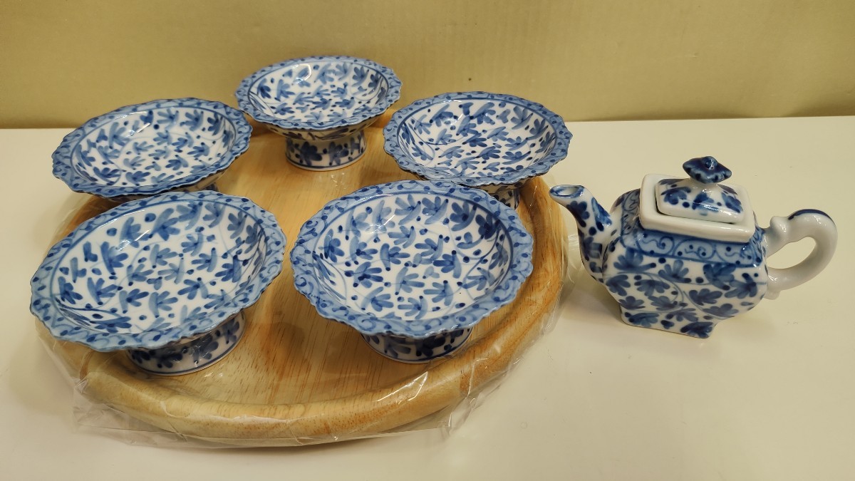 ★保管品★未使用★第一陶器  ミニオードブル 7点セット 足付き鉢 木製トレー付き 豆皿 小鉢 小皿 足つき小鉢★送料\1200-★