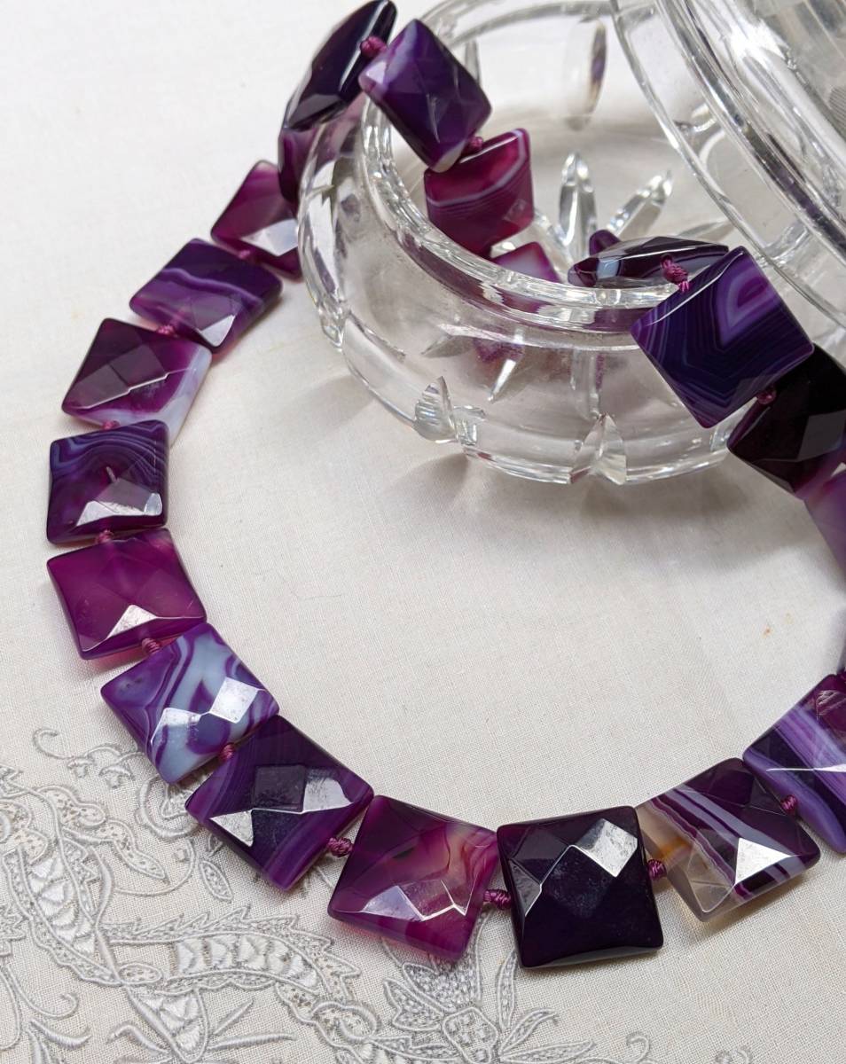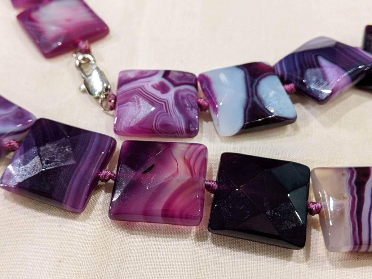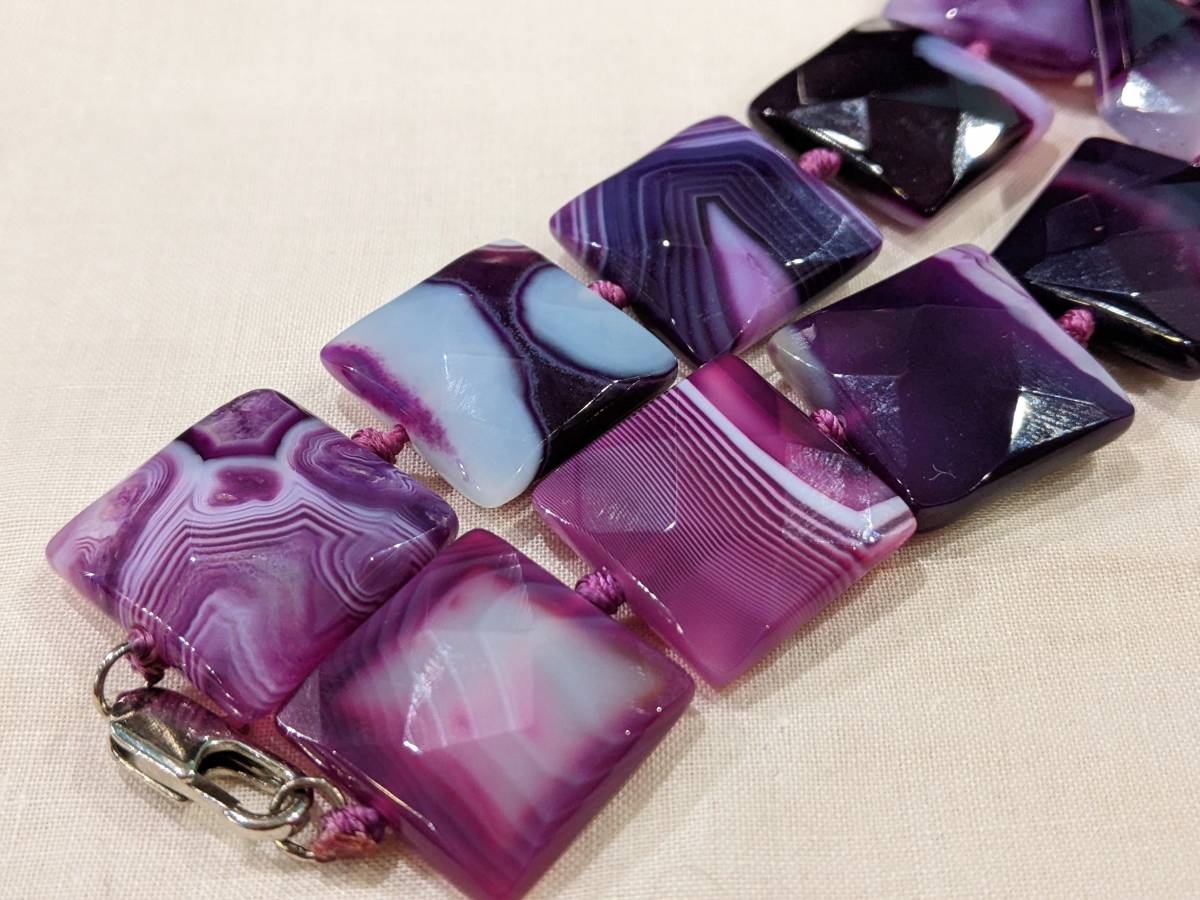 マーブル状であったり、赤紫から濃い紫のグラデーションであったり…複雑な表情を持つ瑪瑙らしい佇まいが魅力的!