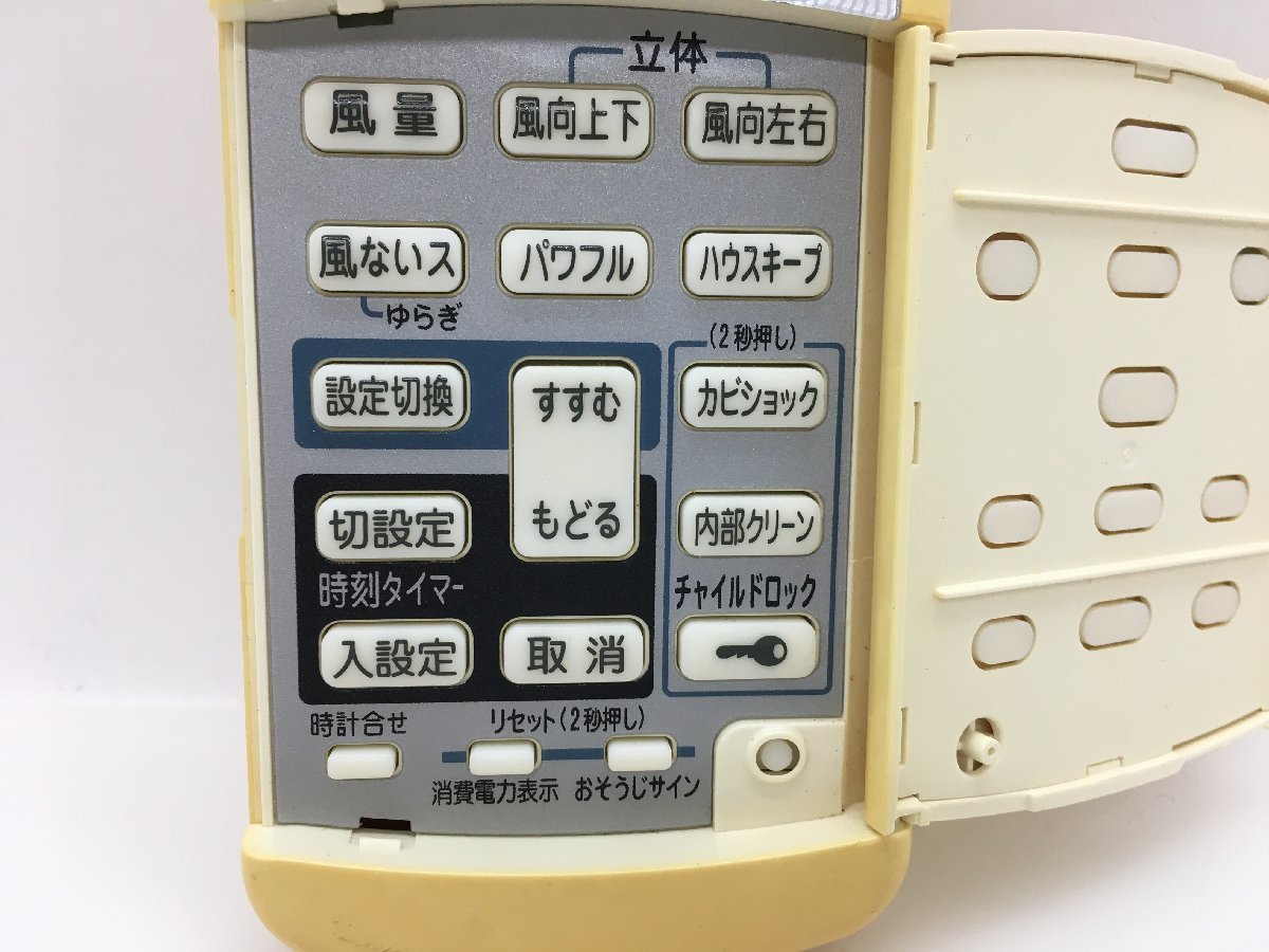 (エアコンリモコンの場合、正面からだとディスプレイ表示が薄い仕様のものもございます。不具合ではございません。)