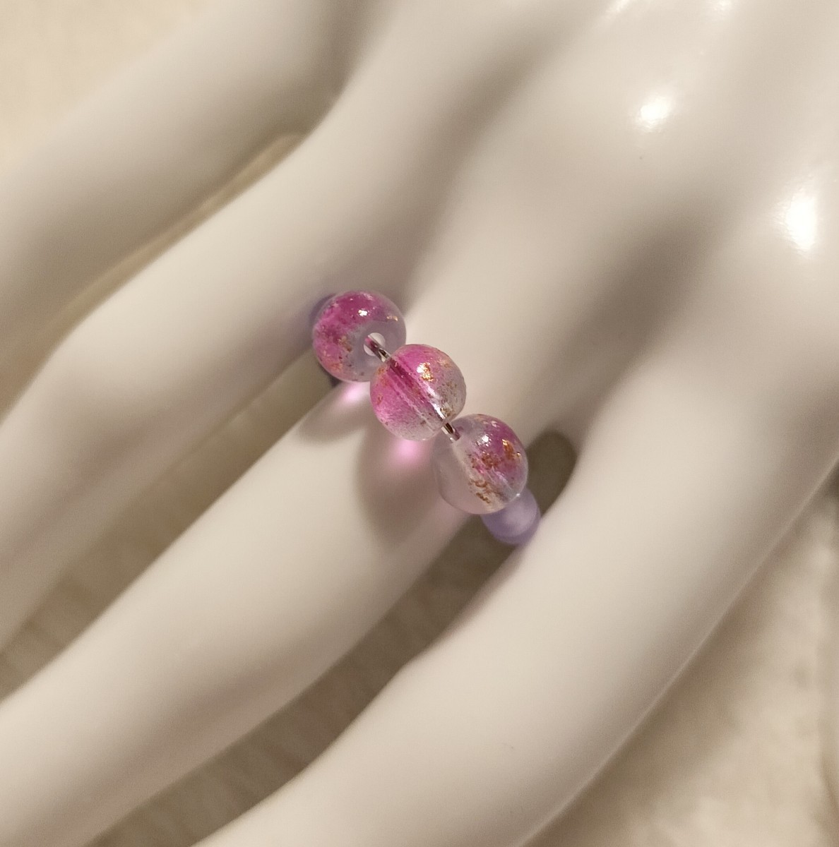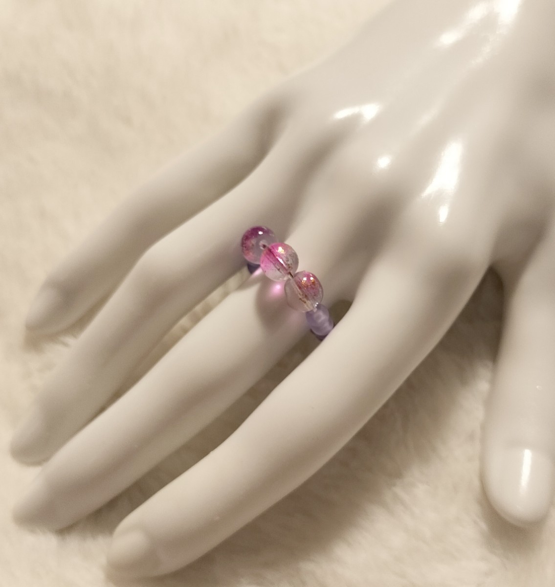 中央に6㎜の少しラメを施したマットビーズ3個と、4㎜のビーズを使用したリングです(=^・^=)