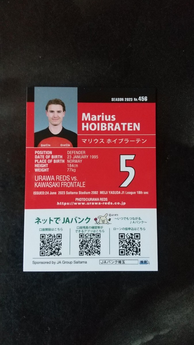 2023年の浦和レッズのマッチデーカードのホイブラーテン選手になります。カードスリーブと硬質のカードケースに入れて発送いたします。新品になりますのでノークレーム、ノーリターン、ノーキャンセルでお願いします。