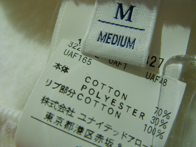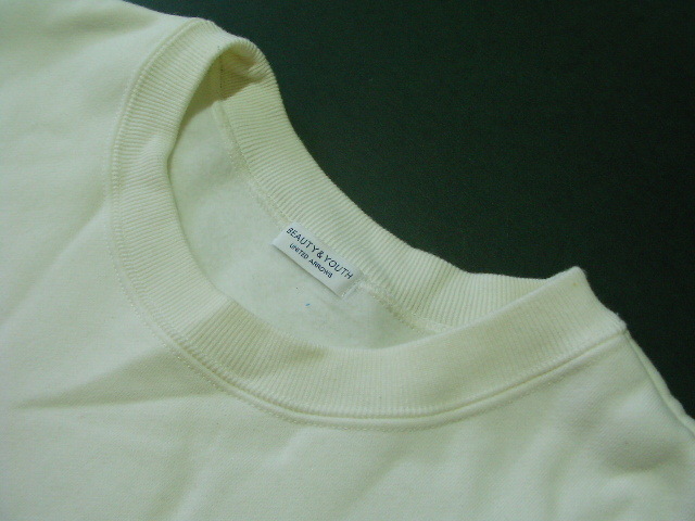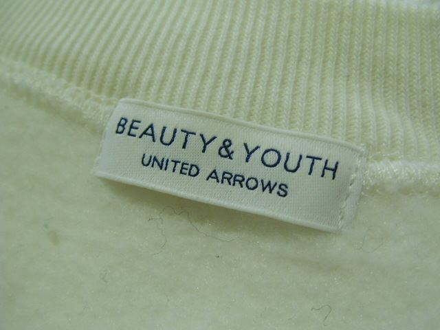 ssy6160 UNITED ARROWS BEAUTY&YOUTH 長袖 トレーナー スウェット プルオーバー ホワイト系 ■ 胸にプリント ■ 無地 Mサイズ