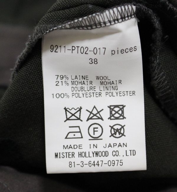 | <商品名> 21SS N.HOOLYWOOD エヌハリウッド 9211-PT02-017 モヘア混 ウール スラックス パンツ 38 <サイズ> 38 <詳しい寸法> ウエスト81股上29.5股下72裾幅22.5(単位:㎝) ぐらいです。 <商品状態> 多少の使用感、薄汚れ、生地に糸の巻き込み(画像参照)がありますが着用に問題はございません。 <商品説明> 9211-PT02-017
