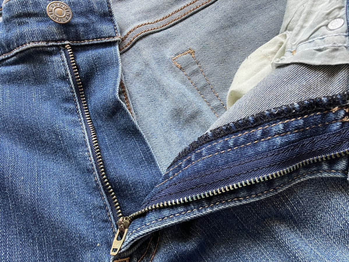 長期保管により、ジッパーに少し緑青(ろくしょう)見られますが、問題なく稼働しますので、穿いていくうちになくなるかと思います。
