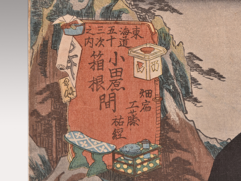 【真作】 三代 歌川豊国 大判錦絵 「東海道五十三次の内(役者東海道)」より二枚 です。 東海道五十三次の主題に合わせて歌舞伎役者達が描かれたシリーズです。 三代豊国の力強く勢いある線描も見どころです。 「小田原箱根間 畑宿」 裏打ちなし、本紙ヤケ、シミ、保管環境によるよごれが少々目立ちます。 端部わずかにヨレが見られますが目立った破れはございません。 裏打ちなし、マージンは一部裁断されております。 「水口 長左衛門」 裏打ちなし、本紙ヤケ、シミ、保管環境によるよごれが少々目立ちます。 その他破れや虫食い跡などはございません。 裏打ちなし、マージンは一部裁断されております。 コンディションにつきましては商品画像も併せてご確認いただき ご了承の上入札下さいませ。 |
