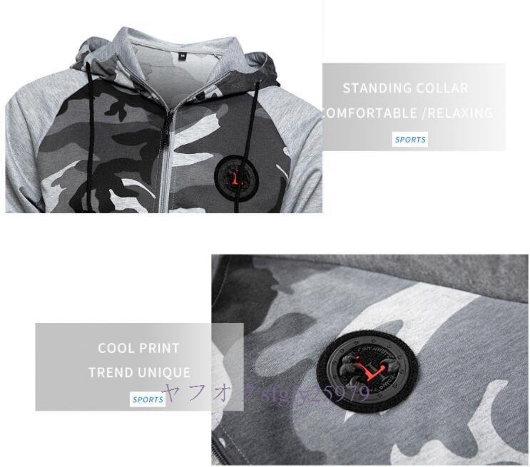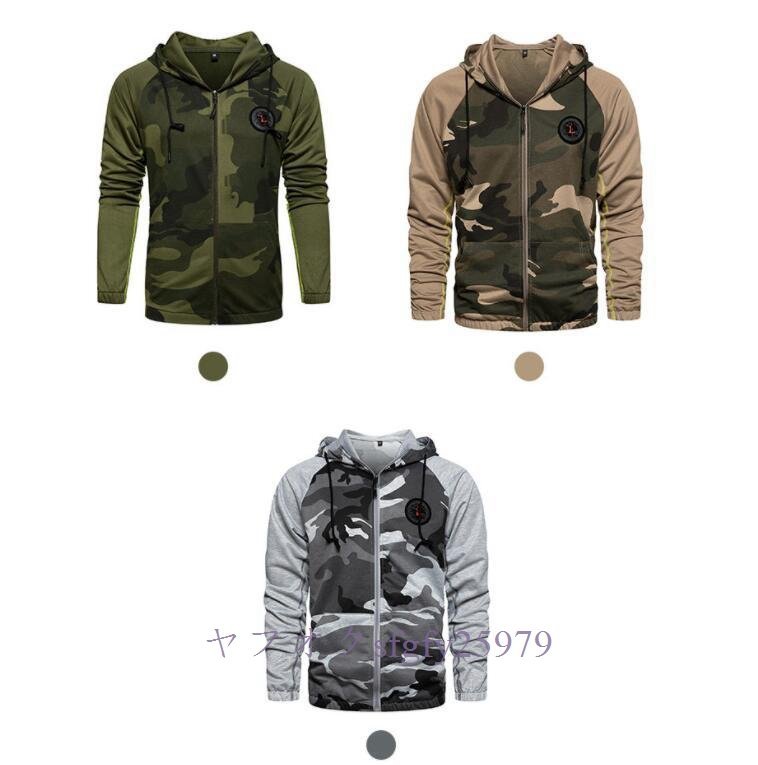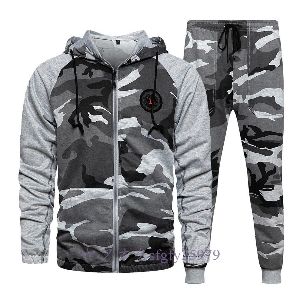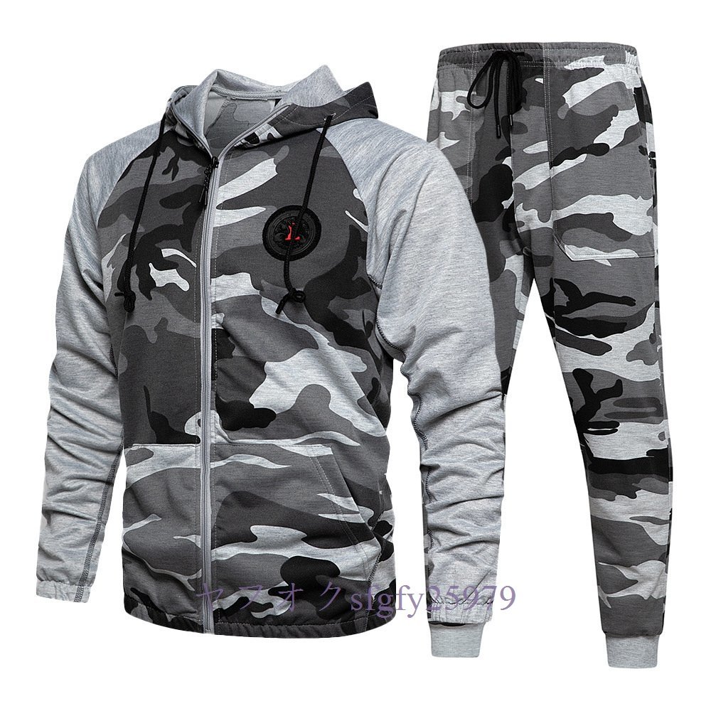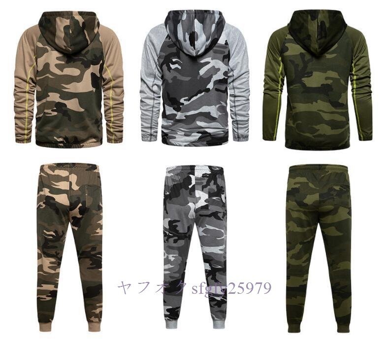 R437新品メンズジャージ 上下セット スウェット セットアップ パーカー トレーナー スポーツウエア 長袖 迷彩柄 S~2XL カーキ
