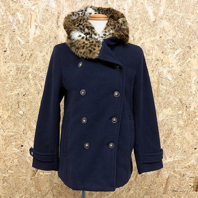 | 商品タイトル | E hyphen world gallery - M レディース ショートコート 裏地付き パーカー フードにレオパード柄のファー裏地 長袖 - ネイビー 紺 |
