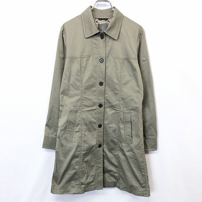 商品タイトル | fd field/dream - M レディース 薄手 ステンカラー コート ボタン留め 裏地無し 袖口スリット 長袖 綿×ポリウレタン グリーンカーキ 緑系 |
