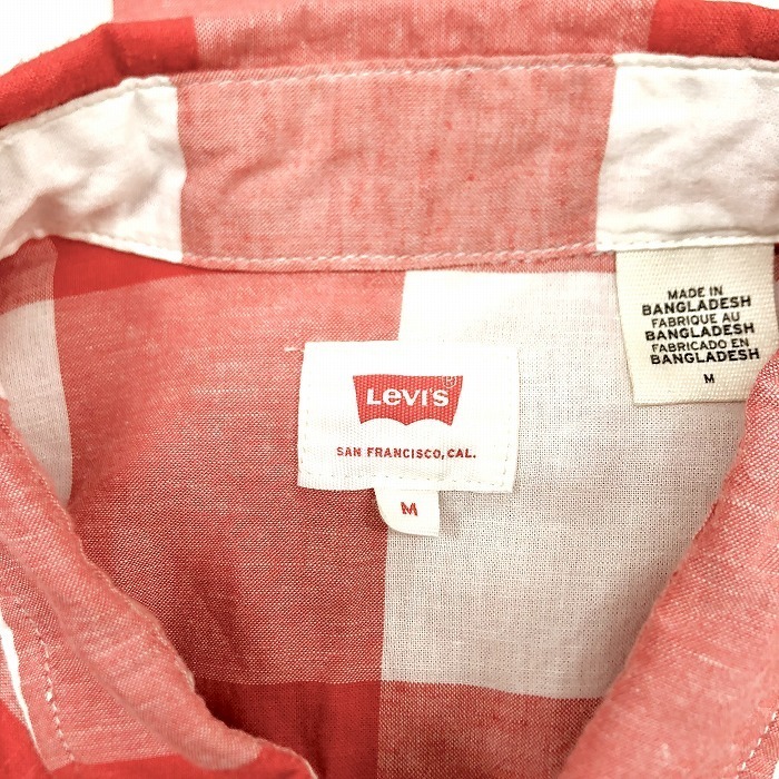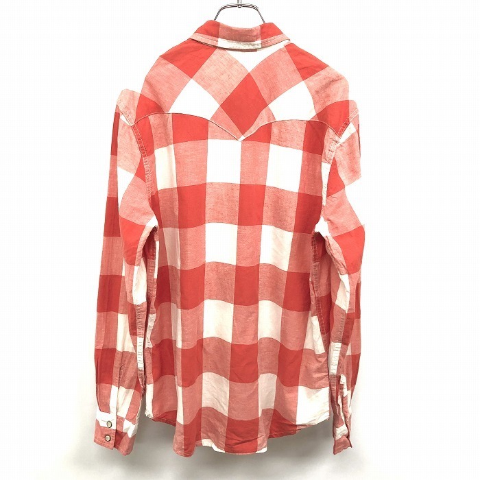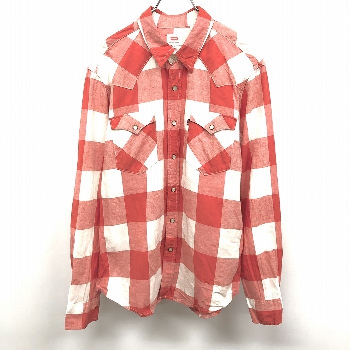 | 商品タイトル | LEVI'S リーバイス M メンズ 男性 薄手 ウエスタンシャツ ドットボタン留め チェック レギュラーカラー 長袖 両胸ポケット サーモンピンク |