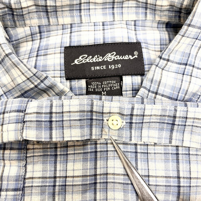 | 商品タイトル | Eddie Bauer エディーバウアー M メンズ 男性 シャツ チェック ボタンダウン 長袖 綿100% ネイビー×オリーブ×オフホワイト 紺系×白系 |