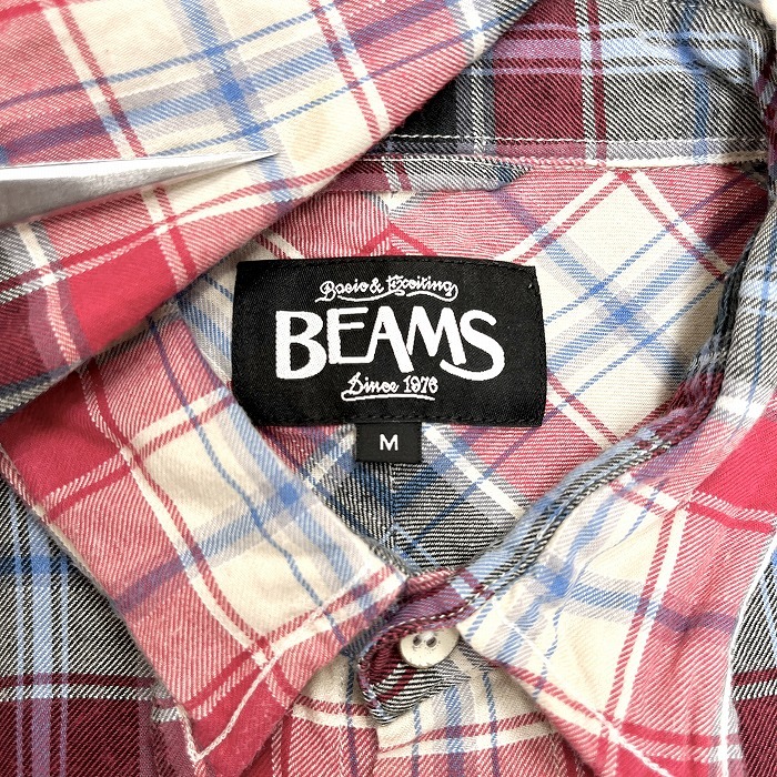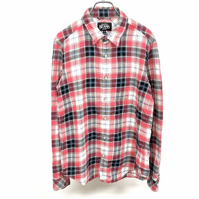 商品タイトル | BEAMS ビームス M メンズ シャツ チェック ワイヤー襟 長袖 綿×ポリエステル×ポリウレタン レッド×ブルー×ブラック×オフホワイト 赤系 |