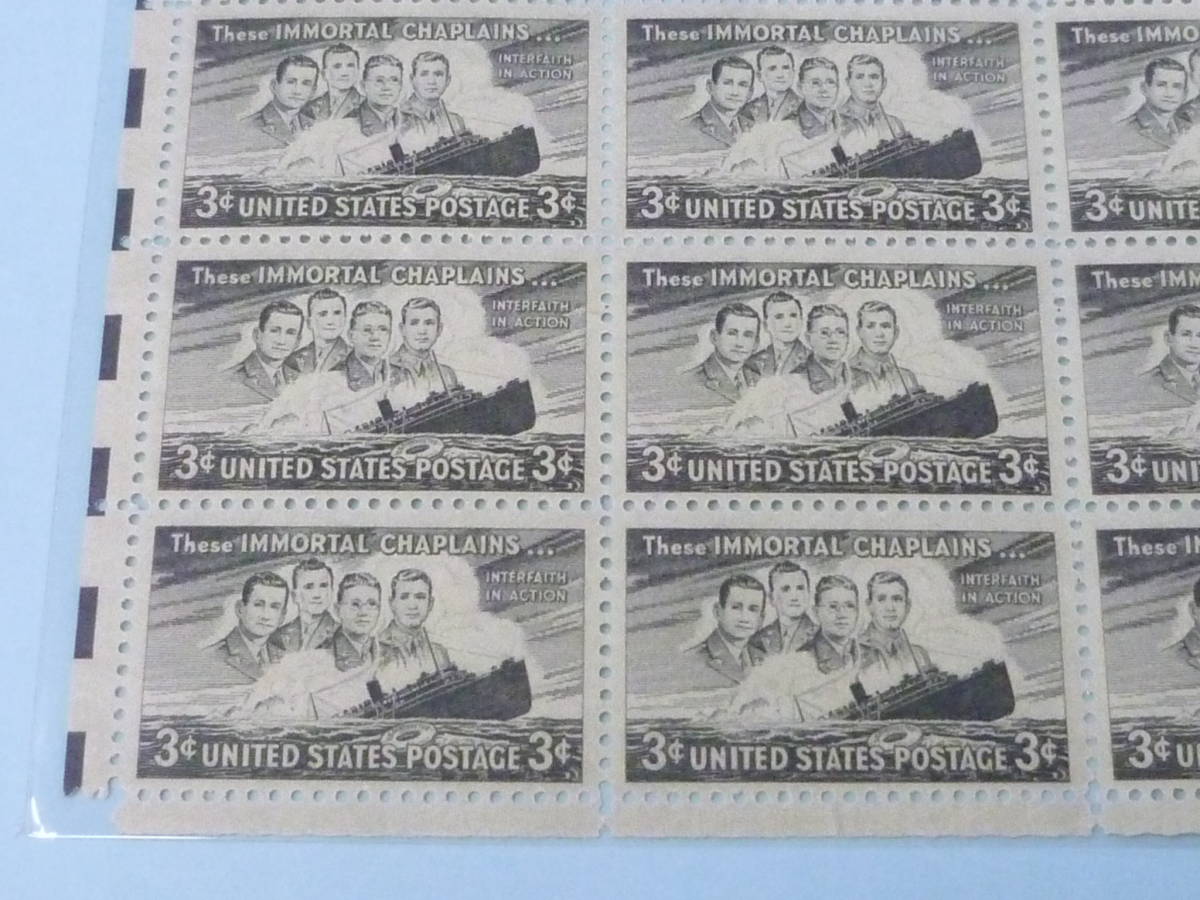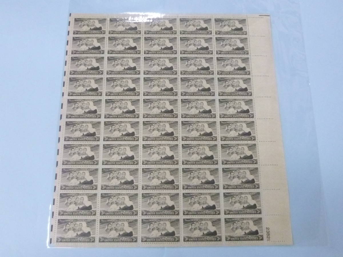 23 P №24 アメリカ切手 1948年 SC#956 4人の従軍牧師と沈むドチェスター号 3c 50面シート 未使用NH・VF 少々目打ち離れ有
